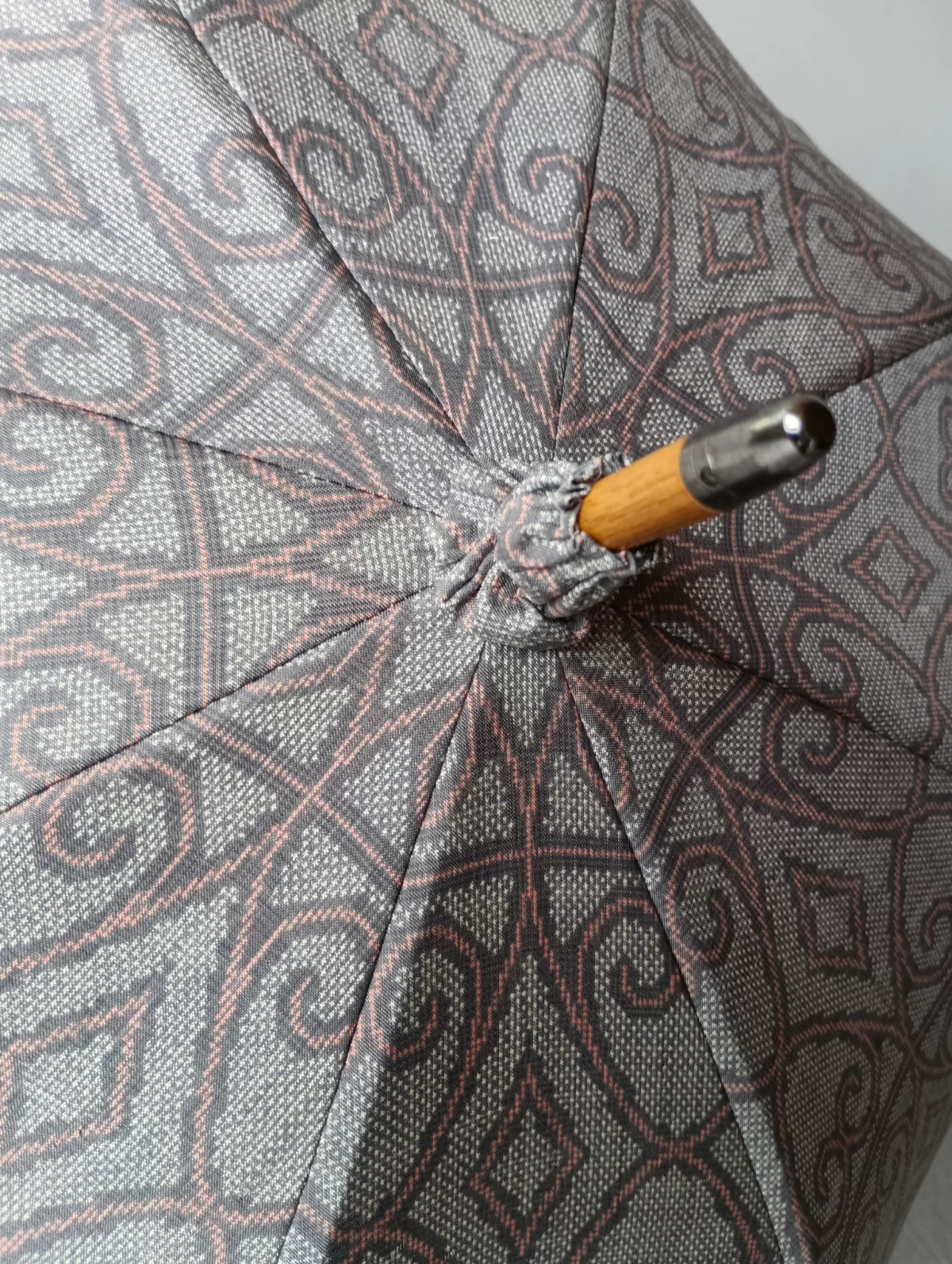 日傘の骨の修理 先代が仕立てた日傘の骨の修理依頼です。親骨と受骨の接合部を修理しました。 修理前 修理後 表は黒い着物、裏には赤い着物の生地を2重張りにした日傘です。 アトリエすずきの洋傘 アトリエすずきの洋傘ネットショップ