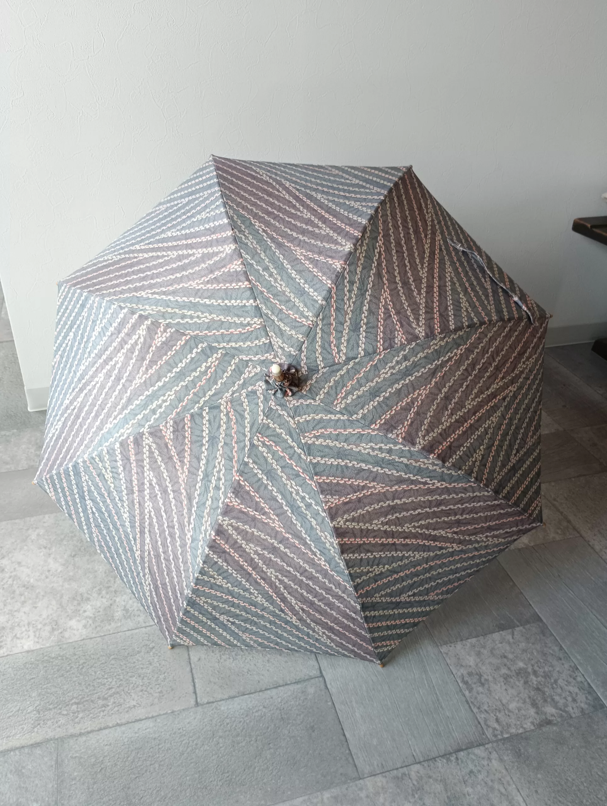 日傘の張り替えのご注文 山の部分が日に焼けて切れてしまった日傘をお着物の生地で張り替えました。 お着物はこちら オリジナルの日傘には付いていない下ロクロの包み、ダボの補強、飾りのお花ボンボンもお付けして素敵な日傘に仕上がりました。骨も修理可能ですし、生地の張り替えをすれば日傘は長くお使いいただけますね。 アトリエすずきの洋傘 アトリエすずきの洋傘ネットショップ