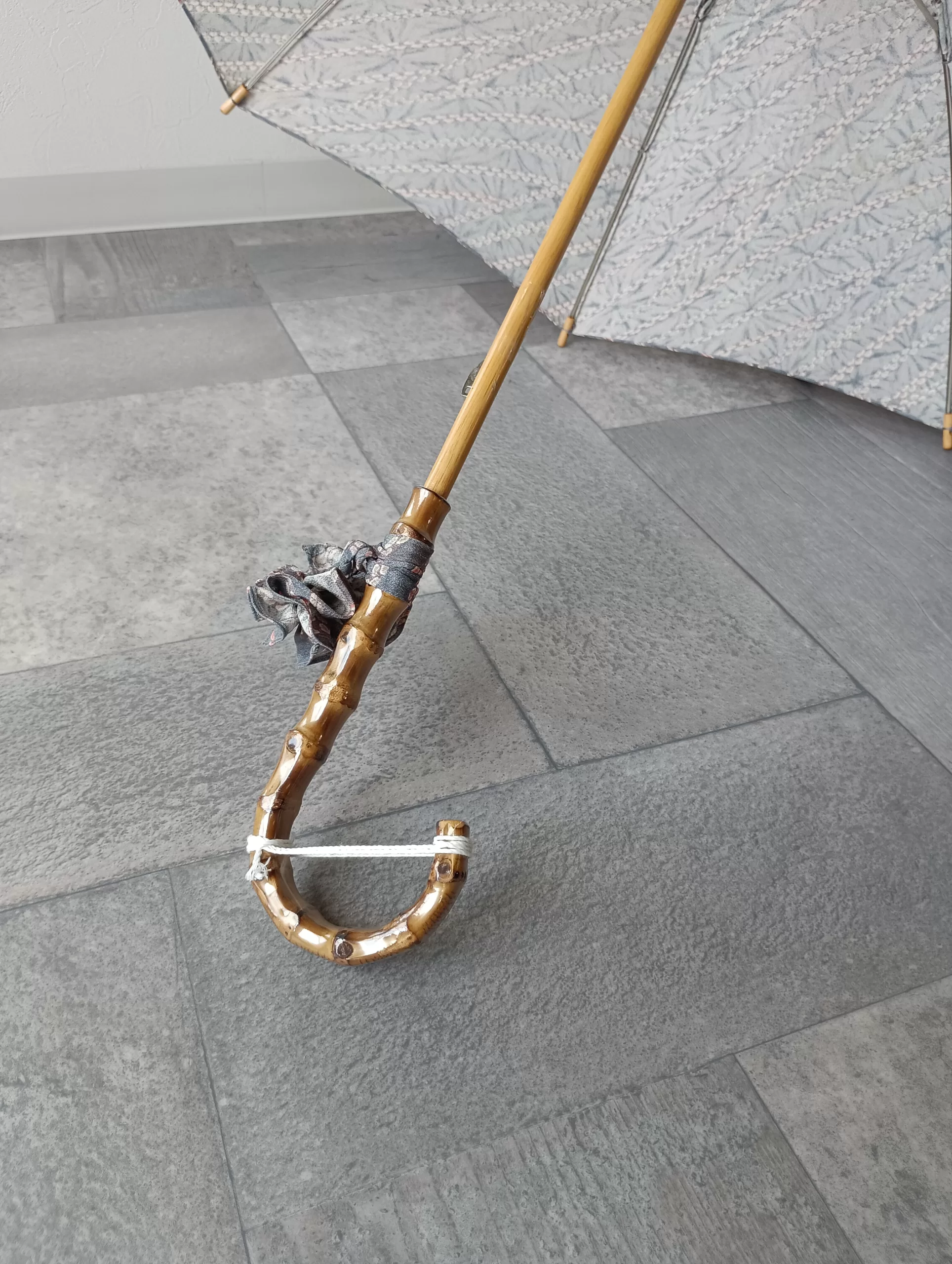 お着物から日傘2本のご注文 お着物から2本の日傘のご注文をいただきました。異なる色の樫の木の芯棒を使用し、それぞれの芯棒の色に合う寒竹の手元をお付けしました。カットする場所を変えて、微妙に異なるデザインにお仕立てしてあります。 アトリエすずきの洋傘 アトリエすずきの洋傘ネットショップ